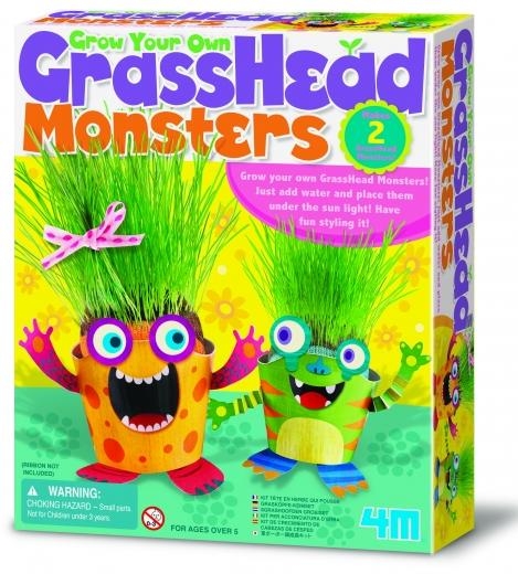 Samodzielnie wyhoduj dwa potwory z trawiastymi głowami. Po prostu dodaj wodę i ustaw je na słońcu, a potem baw się w stylistykę ich fryzur! Zawartość: 2 plastikowe kubeczki, 2 torebki z nasionami, 4 pastylki z podłożem, 2 skarpety, 2 szablony- potworki.