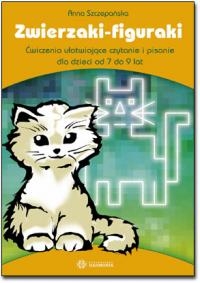 Zwierzaki-figuraki to zbiór ćwiczeń, który pomoże dzieciom w młodszym wieku szkolnym pokonać trudności związane z nabywaniem umiejętności czytania i pisania. Bohaterami ćwiczeń są zwierzaki (m.in. wróbel, konik, baran, prosiaczek, jamnik, kotek) w zabawny sposób przedstawione w wierszykach mających walor poznawczy. Przygodę-naukę ze zwierzakami dzieci zaczynają od zapoznania się z tekstem: mogą słuchać czytanego tekstu lub czytać go samodzielnie, ponieważ utwory zapisano wyraźną, dużą czcionką, między wersami zachowano duże odstępy (dla dzieci, które trudniej opanowują sztukę czytania, np. z powodu niedoborów percepcji sluchowej, przygotowano teksty zapisane sylabami). Kolejny etap to ćwiczenia kaligraficzne. Dzieci przepisują wskazany fragment wierszyka według wzoru, w liniaturze zróżnicowanej pod względem szerokości: od bardzo szerokiej do coraz węższej.