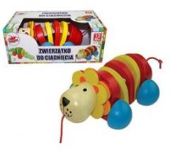 Drewniany lew podczas ruchu zabawnie porusza grzbietem, wydając przy tym przyjemny dźwięk.
