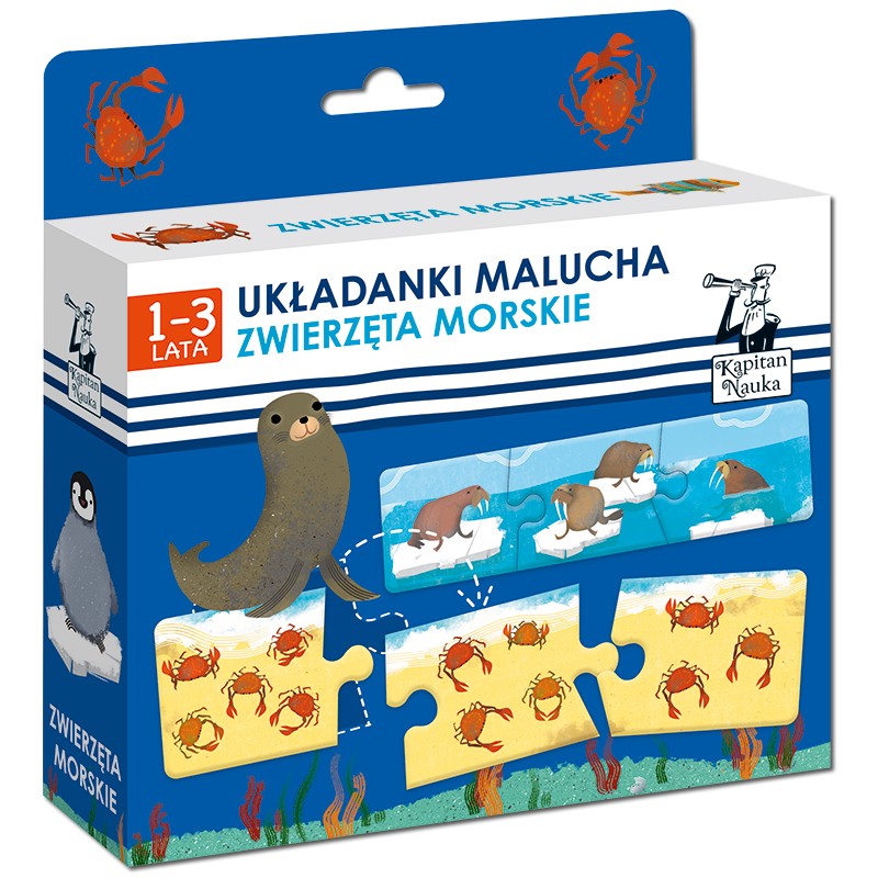 Układanki malucha. Zwierzęta morskie to wyjątkowa propozycja dla dzieci w wieku od roku do trzech lat. Piękne, trzyelementowe puzzle, narysowane przez SEBASTIANA OPRYSZKA, to nie tylko wspaniała zabawa, ale także ćwiczenie koordynacji oko-ręka, spostrzegawczości i koncentracji.