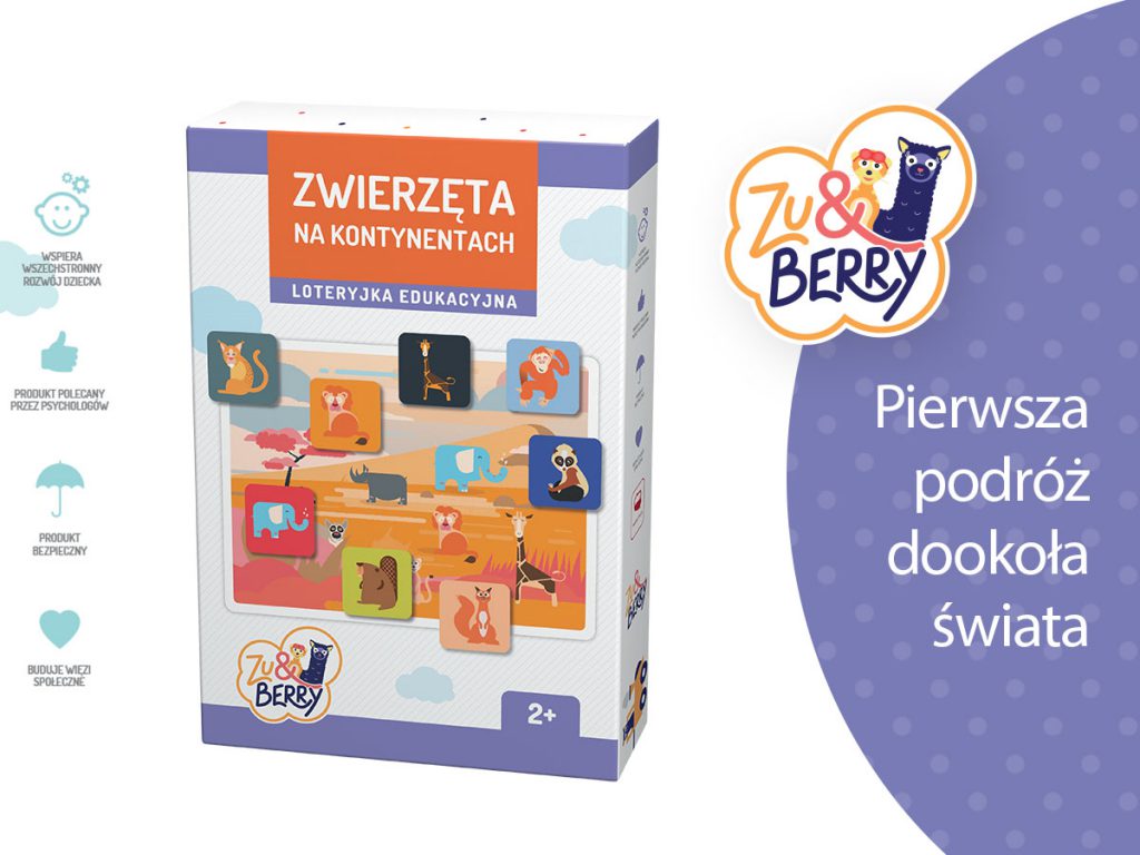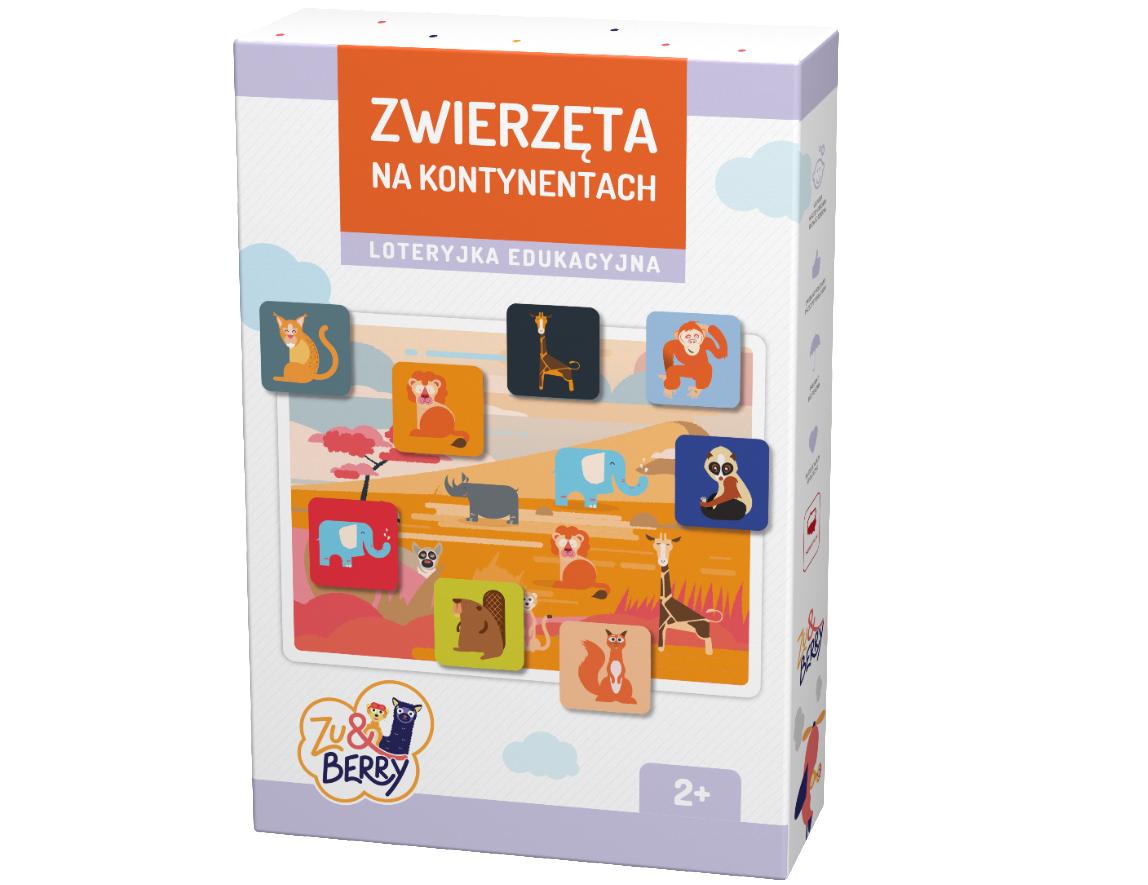 Zwierzęta na kontynentach. Loteryjka edukacyjna to piękna i mądra gra, która pozwala dzieciom wyruszyć w podróż po wszystkich kontynentach. Maluchy uczą się rozmieszczenia zwierząt na mapie oraz poznają ciekawostki dotyczące nieznanych im dotąd gatunków.